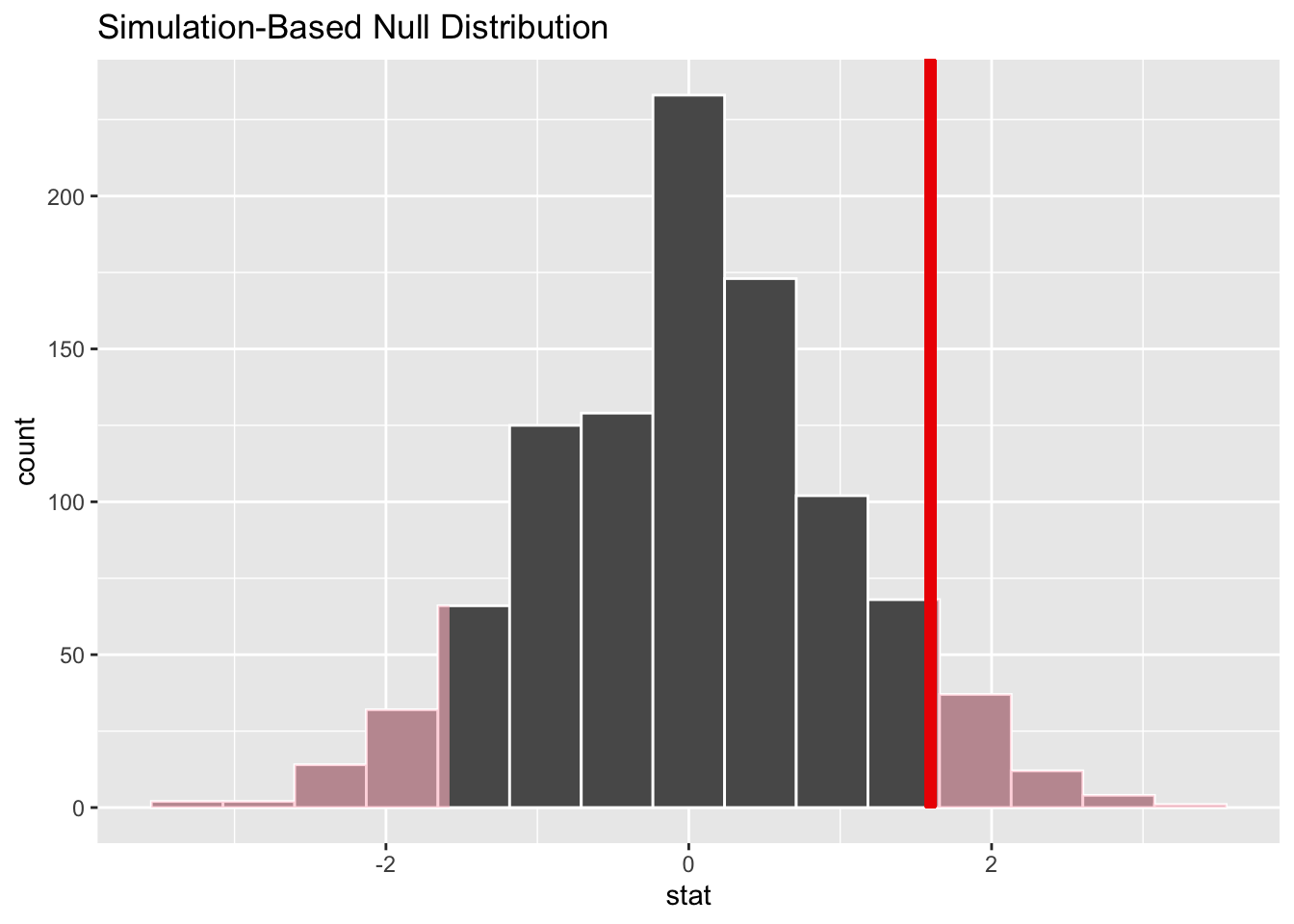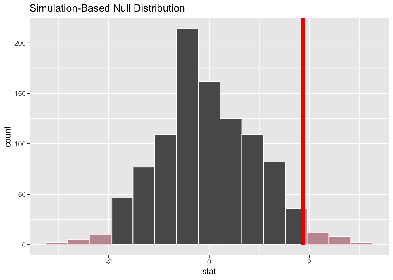 get_p_value(null_dist, obs_stat = test_stat, direction = "two-sided")# A tibble: 1 × 1