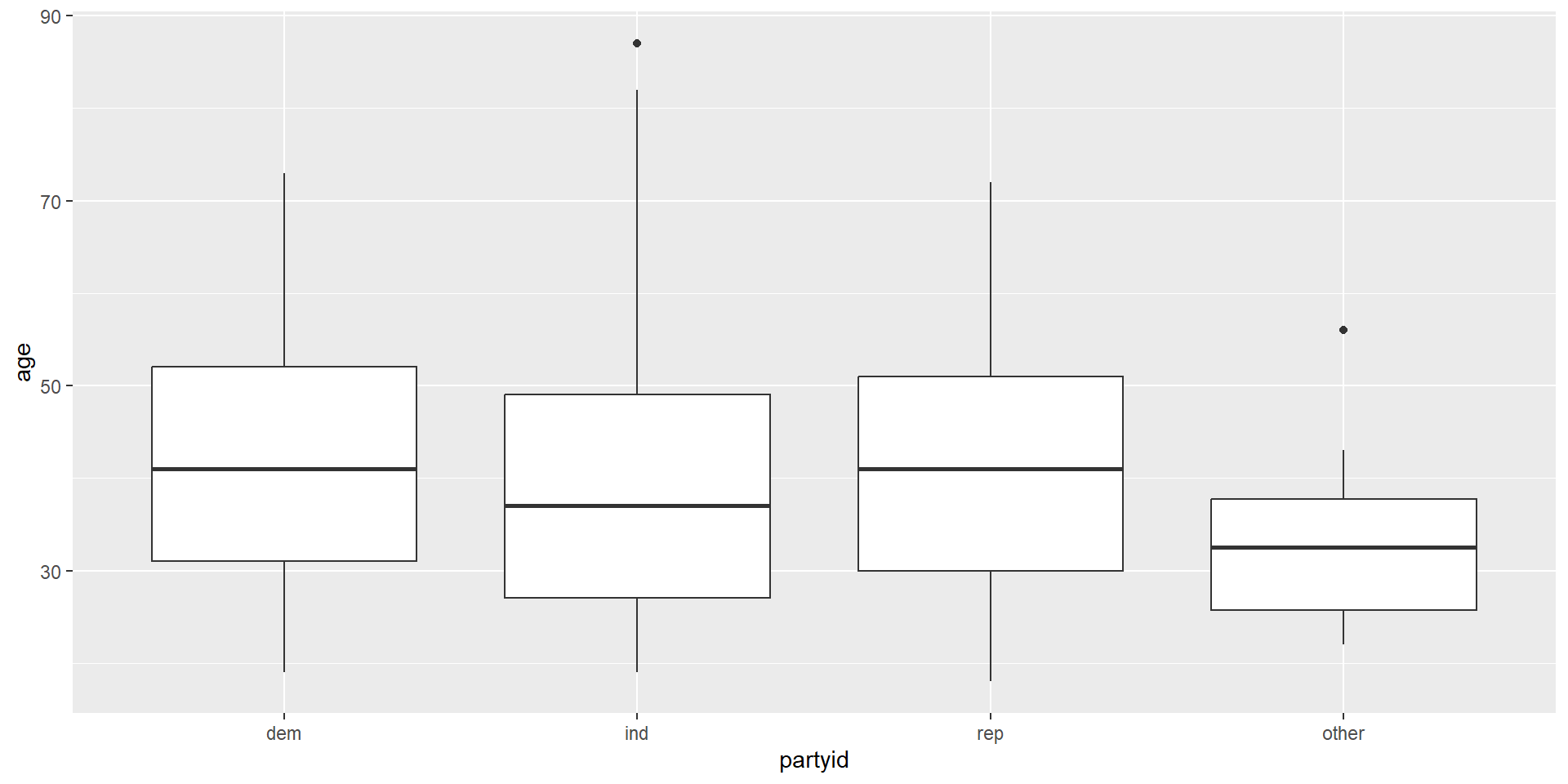 Proportion bar chart: Good at comparing the compositions of the bars. We lose information on the distribution as a whole, but we gain information on whether people from both groups are evenly distributed between income classes.