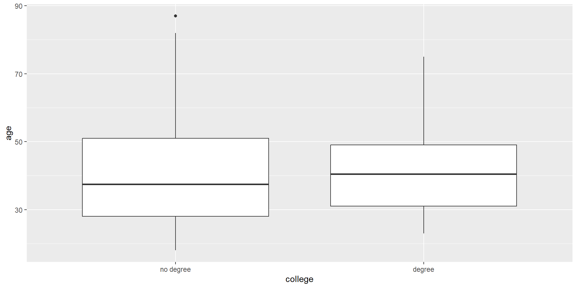 Response: Whether or not someone received a college degree. Two-category categorical.